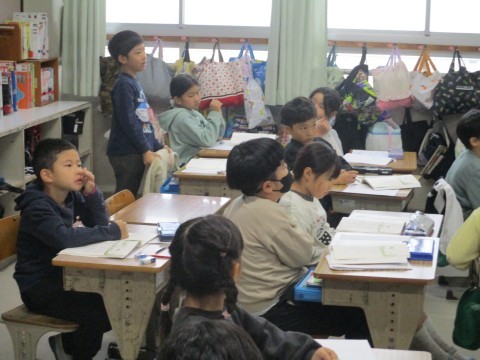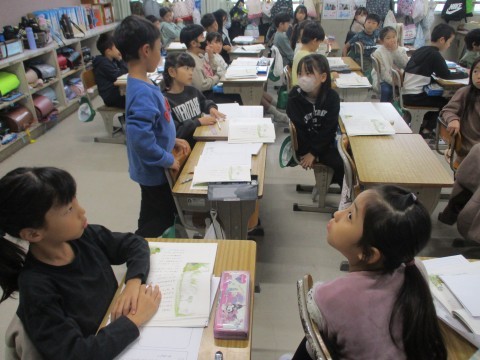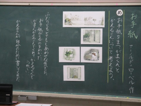 2組の国語「お手紙」の学習です。今日は,「お手紙をまつがまくんとかえるくん」について考えました。かたつむりがお手紙を届けてくれるのをまつ幸せな時間ですね。お手紙を届けてくれるのが「かたつむり」であることが,このお話の世界にゆったりとした味わい深い時間が流れる鍵になっていますね。