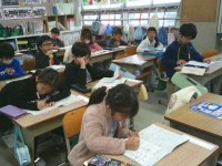 体育館で,いろいろな運動をしていました。跳び箱にのってとびおりた後は,肋木を上ったり,フラフープをまわしたりしていました。