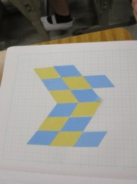 2組の図工です。木材をいろいろな形に切って作品をつくっています。