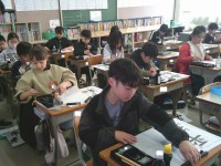 面積を求める方法を考えていました。5つのブロックをかたまりと考えることで,かけざんを使って求められることを見つけました。