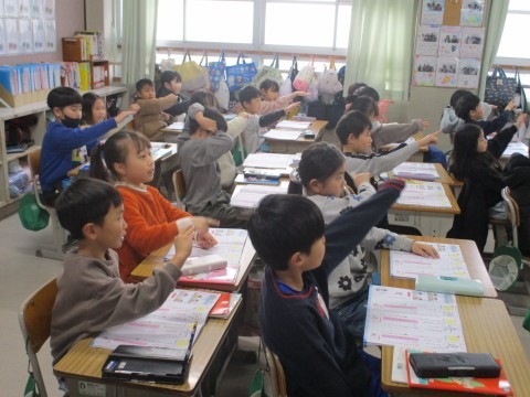 2年 ユニバーサルデザイン化 公開日 2026/02/10 更新日 2026/02/10 2年生 2組の国語です。漢字の学習をしています。まずは,ドリルになぞり書きします。それからみんなで空書きをして,実際に書いていきます。書く前に,先生が一言,「グー・ペタ・ピン!」と言うとみんなの姿勢が整い,教室内が集中した雰囲気になります。こどもたちがメリハリをつけて活動するためのパターン化された指導です。こどもたちが安心して学べる,ユニバーサルデザイン化とはこのことですね。 +1