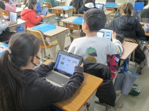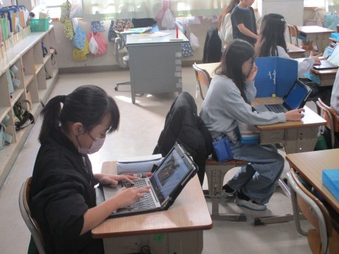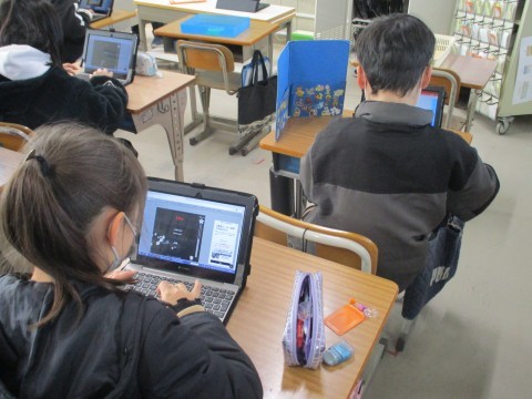 2組では,社会のテストが終わったこどもたちがタイピングの練習です。