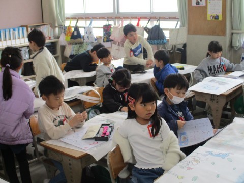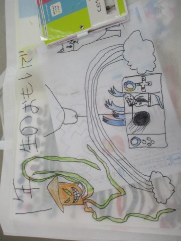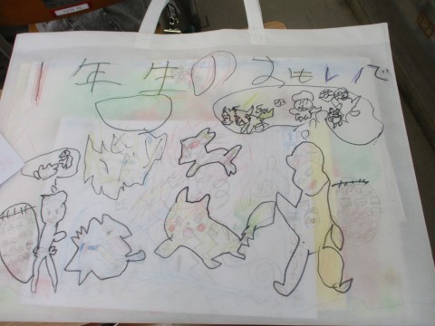 2組では,作品バッグに思い思いの絵をかいて,学習したプリントや作品を返してもらっていました。
