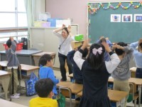 2組の音楽です。アメリカの遊び歌「セブンステップス」でとなりのお友だちとあそんでいました。