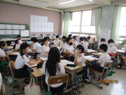 国語の時間です。立場を変えて話し合い,聴き合う授業をしていました。