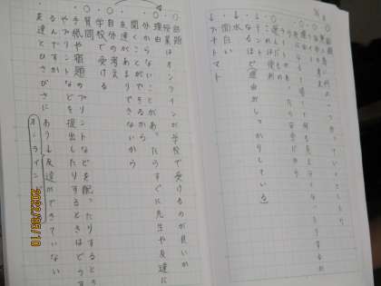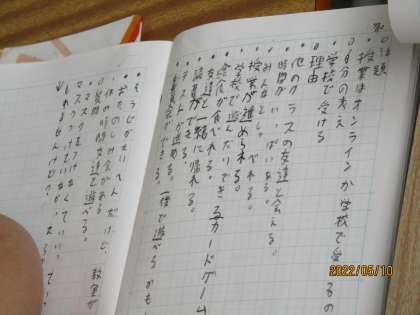 班で話し合い,自分の立場の主張ポイントをぎっしりノートに書き込んでいました。