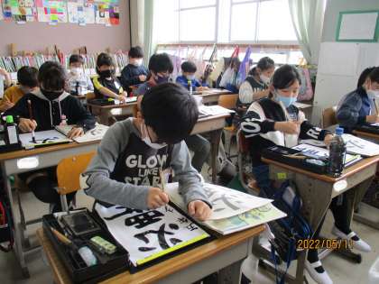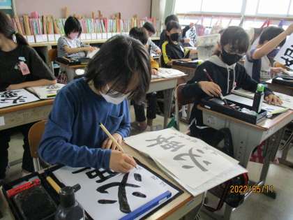 納得のいく字が書けたら,名前を書きます。最後まで,集中しましょう。