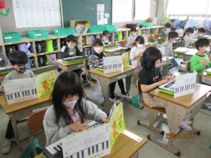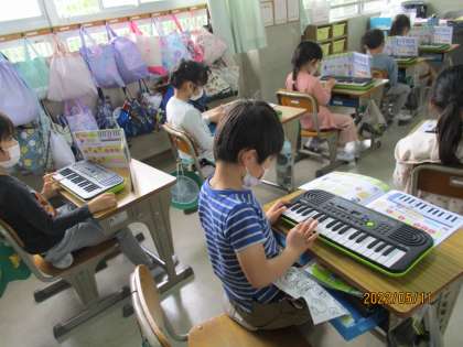 鍵盤ハーモニカができないため,音の出る電子ピアノを使って練習しています。
