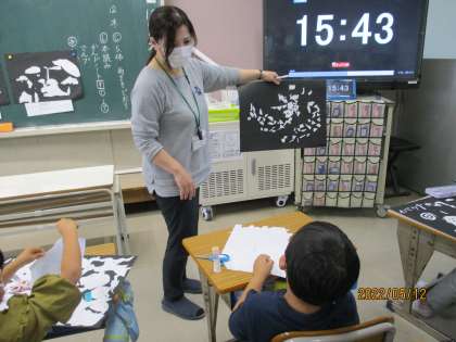 完成した絵を見ながら,思い思いのタイトルをつけていました。