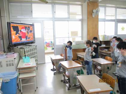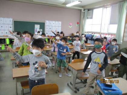朝の特活の時間を利用して,教室でダンス練習です。
