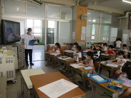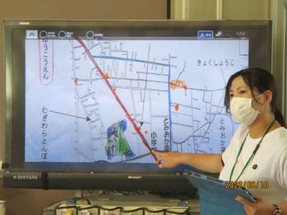 良い工夫がされている地図を撮影し,大画面で共有。友だちの良い工夫を自分の地図に取り入れちゃいましょう。