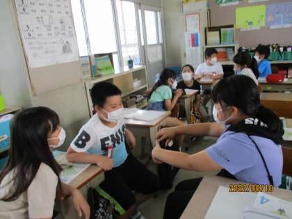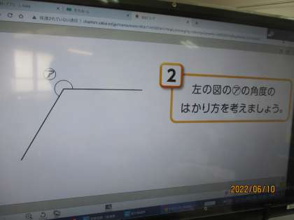 算数の時間です。この角度はどうやって測るのでしょうか? 話し合っていました。