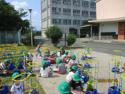 生活科の授業で,野菜の観察をしました。もう大きな野菜ができているものもありました。
