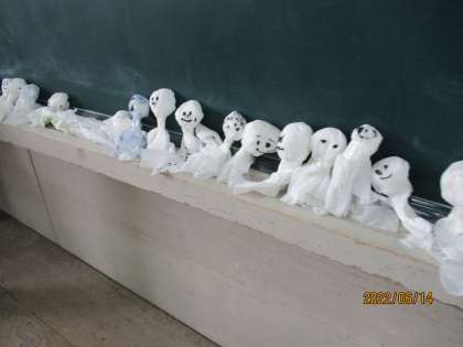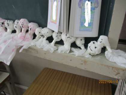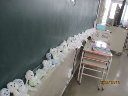 本日の3時間目のプールに向け,たくさんのてるてる坊主が飾られていました。