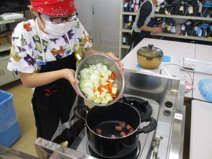 お鍋を温め,サラダオイルしいて,カットした食材をイン♪