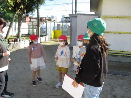 こっちの班では「鬼ごっこ」。鬼は帽子が赤と緑。さぁ,逃げましょう♪