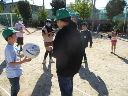 10月14日(金)たてわり活動の様子 その12 公開日 2022/10/14 更新日 2022/10/14 全体行事 「ボールをどうぞ」今日ボールを譲ってもらった人は,またいつか,ボールを譲る側になるのでしょうね。