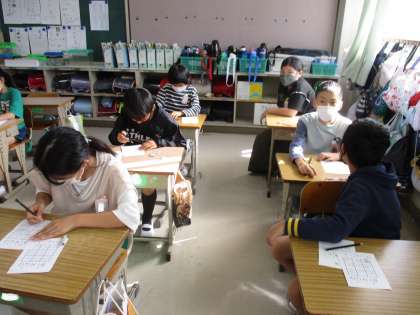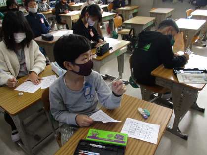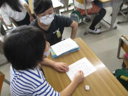 ビンゴゲームをしている班です。紙に数字ではなく,ワードを書き込んでいました。