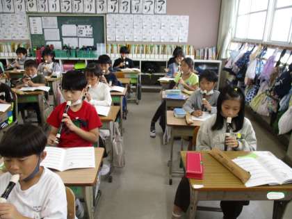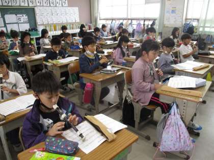 同じ時間,隣のクラスでもリコーダー練習していました。