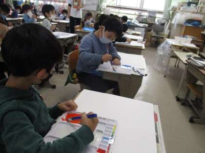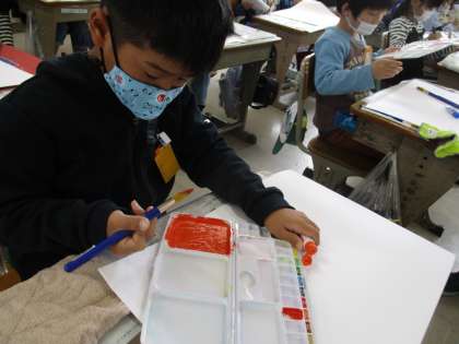 「色を選んだら,パレットにたくさん作りましょう」と先生から指示がありました。