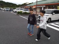 ネットをはさんで,ペアでボールのパス交換をしています。