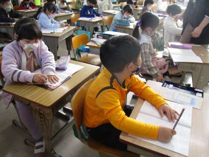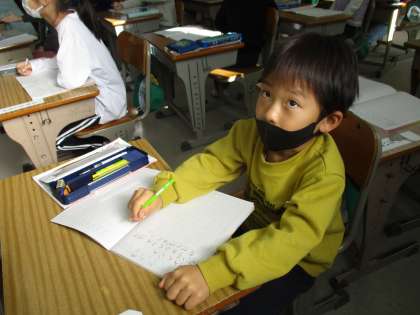 算数の時間です。「ひろさくらべ」くらべの単元を学習していました。