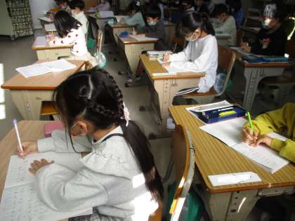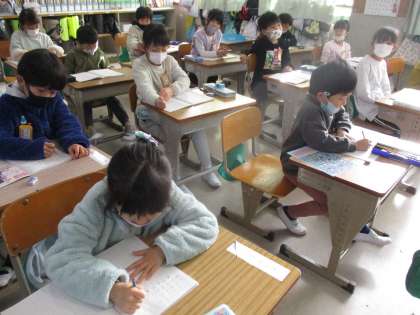黒板に書かれた授業のめあてと解き方の見通し。自分のノートにしっかり書き込んでいます。