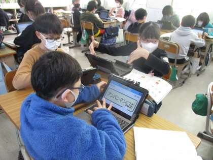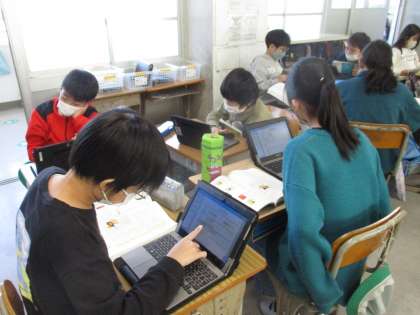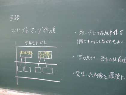 国語の時間です。お話の内容を読み,パソコンで「コンセプトマップ」にしていました。