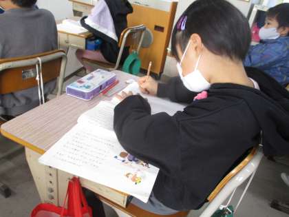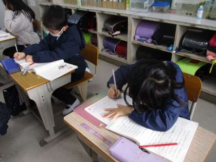 感想文を書き始めました。みんな静かに取り組んでいます。