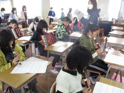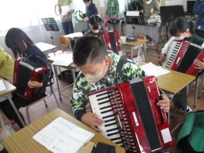 音楽の時間です。合奏練習をしていました。