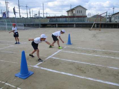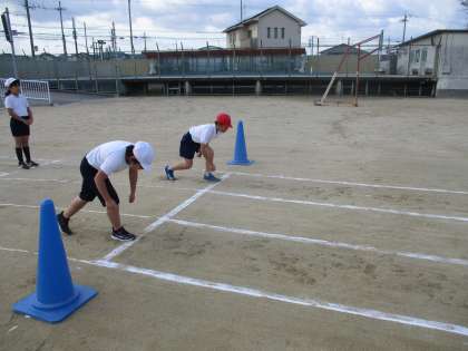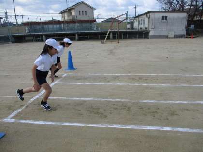 しっかり体が温まった後で,50m走のタイムを計っていました。