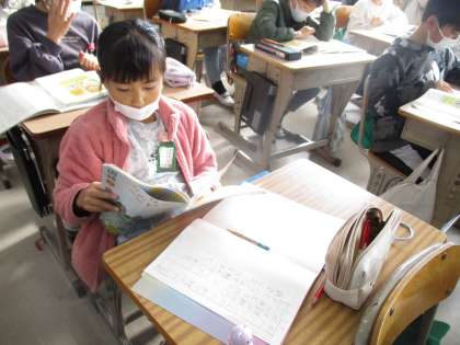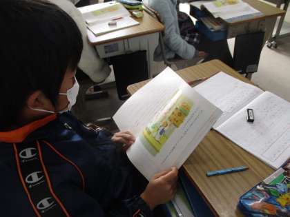 登場人物の気持ちの変化を読み取るために,教科書を読み込んでいます。