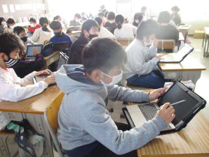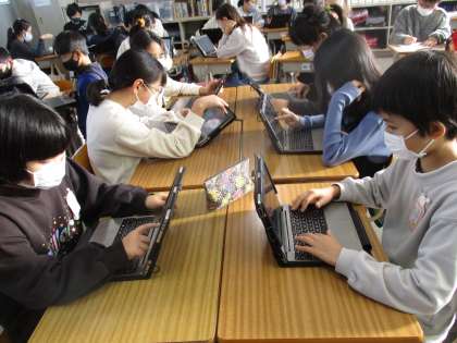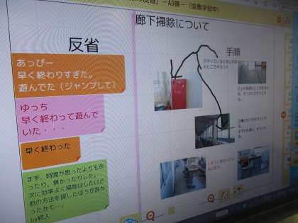特別活動の時間です。「掃除の反省」をICTを活用してとりくんでいました。