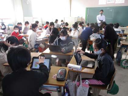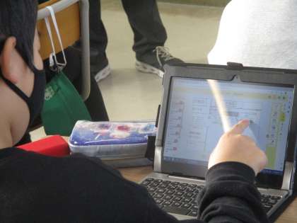 「ほうきで取れない汚れは雑巾でふく」など,改善点も書き込んでいます。自分の考えを可視化し,簡単に共有できる。ICTのメリットを最大限活用していました。