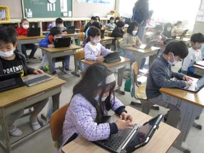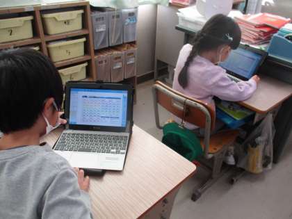 先生からキーボードの文字変換表が配信されています。機会さえあれば,ローマ字によるキーボード打ちも,子どもたちはすぐに覚えてしまうんでしょうね♪