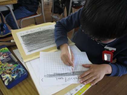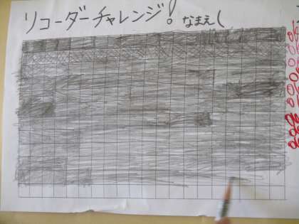 一心不乱にマスを塗りつぶしている理由は… 先生からもらえるがんばったねシール! 今はクリスマスバージョンがもらえるそうです。そりゃ真剣になりますね♪