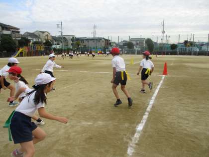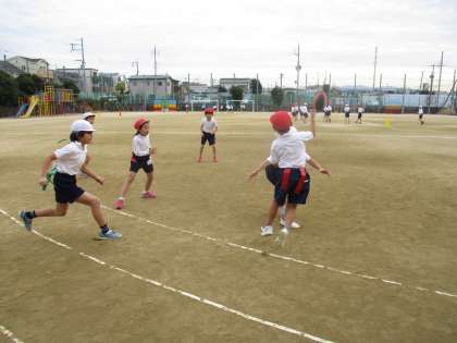 初めてのタグラグビー。動き方がわからず,戸惑うところもありましたが,みんな元気に動き回っていました☆彡