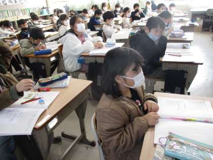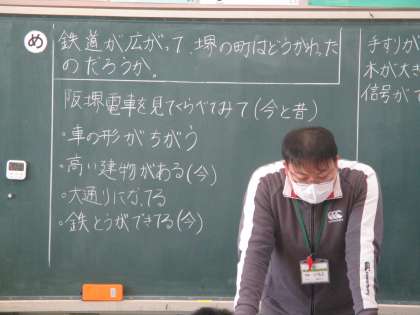 社会の時間です。「わたしたちの町,堺」より,鉄道の学習をしていました。