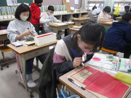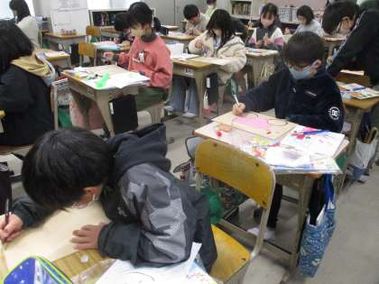 図工の時間です。「伝言板」に取り組んでいました。