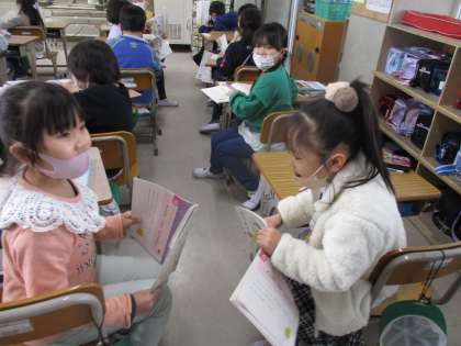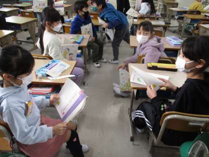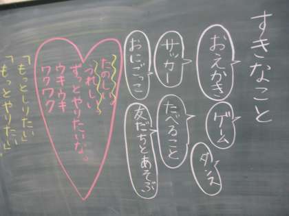 道徳の時間です。自分の「すきなこと」を友だちと伝え合っていました。