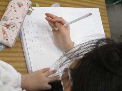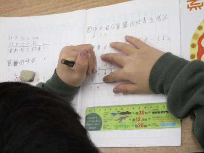 定規でひっ算の線を引いています。見やすいノートになりますね♪