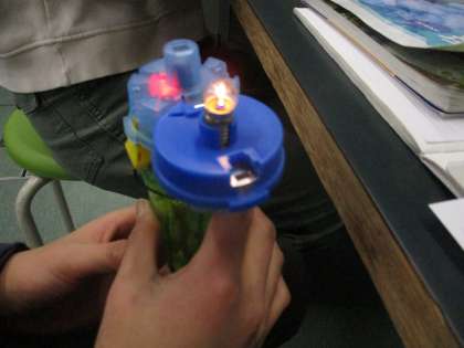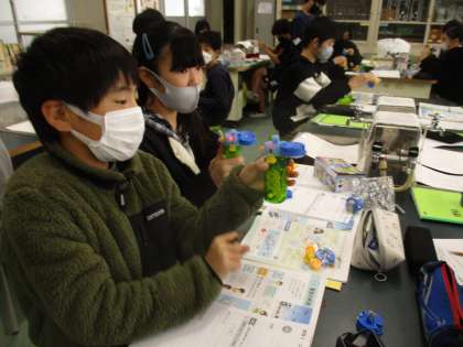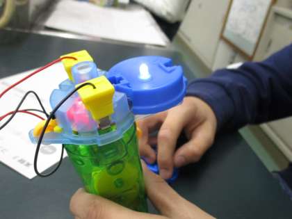 蓄えた電気で,「豆電球」と「発光ダイオード」の消費電力の違いを調べていました。