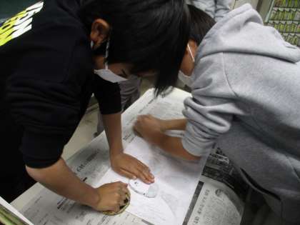 インクを塗って,和紙を載せて,ばれんでこすります。