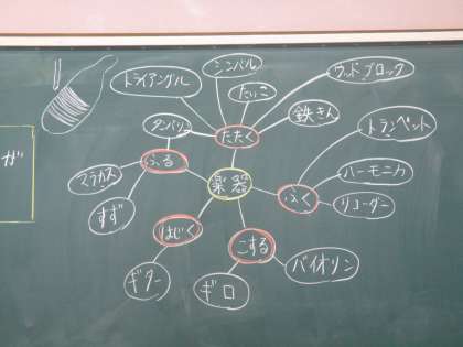 「楽器はどのようにして音が出ているか」マッピングで広げていました。