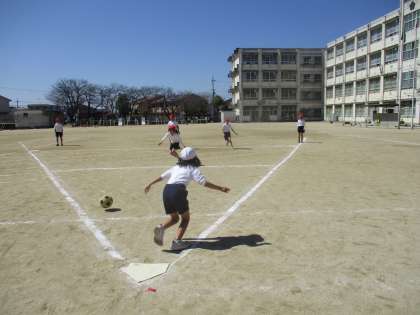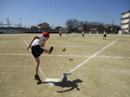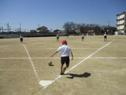 ホームベースの上にボールを置き、キック&ダッシュ!