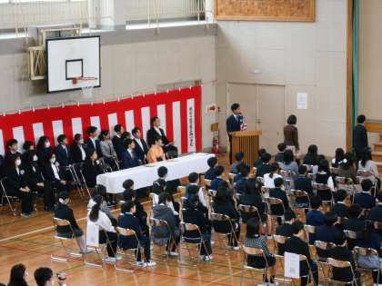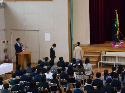 みなさんへの証書授与。おめでたいのですが、先生たちは心なしか、寂しそうに見えますね。
