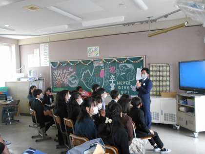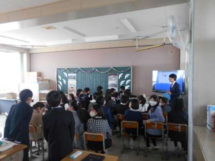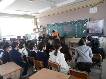教室に戻り、最後のホームルーム。各担任が準備したDVDを視聴していました。