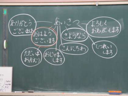 3組の生活科です。いろいろなあいさつについて、みんなで話し合っています。
