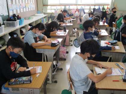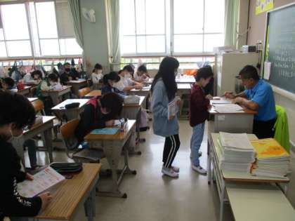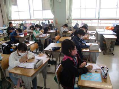 1組の算数です。直方体と立方体の体積の求め方を学習しています。