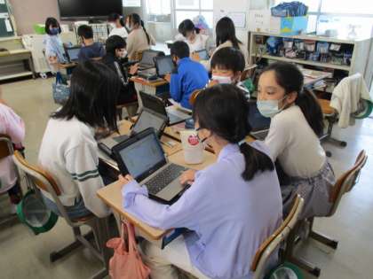 1組の歴史の学習です。飛鳥・奈良時代の資料から、どんな時代であったかを予想し、タブレットのXチャートに自分の考えを入力しています。